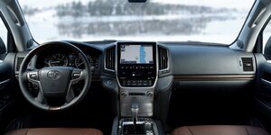 Внедорожник компании Toyota оснащен по высшему разряду уже в базовом исполнении! Список стандартного оборудования включает в себя датчики света и дождя, кнопочный запуск мотора, водительское кресло с электроприводом, разные электронные ассистенты, LED-оптику и информативную приборную панель с подсветкой и цветным мультифункциональным экраном. В топовой комплектации Toyota Land Cruiser 200 2019 года доступны 4 панорамных камеры, еще больше систем активной безопасности, мягкая LED-подсветка интерьера, электролюк, русифицированная система навигации и многое другое.