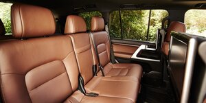 Цена на Тойота Ленд Крузер 200 полностью компенсируется за счет потрясающего интерьера, оформленного исключительно качественными материалами. В зависимости от комплектации, сидения могут быть обтянуты серой тканью, либо натуральной кожей черного, бежевого или благородного темно-коричневого цвета. На выбор предлагаются два варианта салона: 5- или 7-местный.